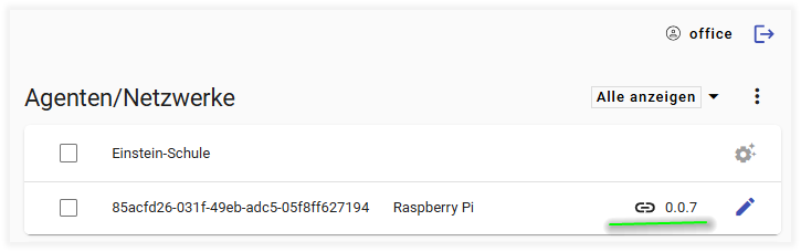 Die aktuell installierte Agent-Softwareversion wird auf der rechten Seite angezeigt: