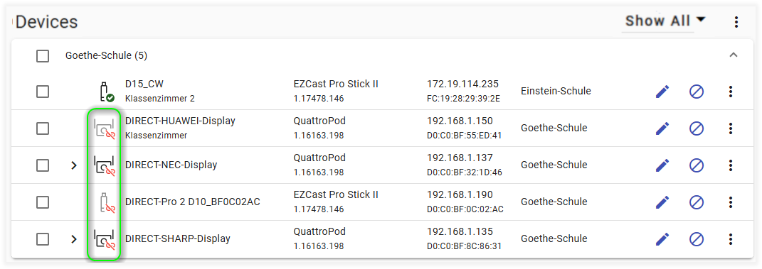 The device overview is the area where administrators work most frequently to get an overview of the status of all devices in their infrastructure and to perform actions: