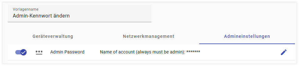 - An overview of the included settings can be viewed by clicking on the name of the template: