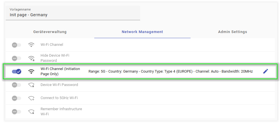 Network Management→Wi-Fi Channel (Initiation Page Only):